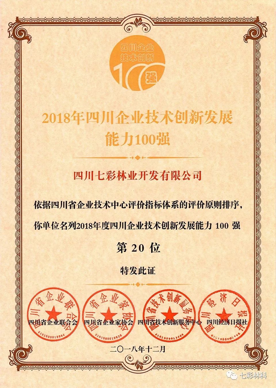硬實力!七彩林科榮膺四川技術(shù)創(chuàng)新百強!