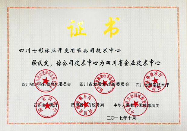 2017年10月,經(jīng)申報、初評、答辯、現(xiàn)場核實和公示等程序,四川省第二十二批省企業(yè)技術中心認定名單及撤銷的省企業(yè)技術中心名單予以公布。四川七彩林業(yè)開發(fā)有限公司(簡稱:七彩林業(yè))技術中心被認定為“四川省企業(yè)技術中心”。