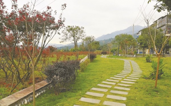 正月里的一天,溫暖的陽(yáng)光照得人心里亮堂。沿蒲張路蜿蜒而上,沿途春意萌動(dòng)、草木青蔥,向峨這個(gè)以獼猴桃、山地運(yùn)動(dòng)聞名的風(fēng)情小鎮(zhèn)正向人們展露自己的芳華。記者來(lái)到了石花社區(qū),如果說(shuō),大美向峨是一幅徐徐展開(kāi)的水墨丹青畫(huà),那石花社區(qū)就是其中濃墨的一筆,入眼的是綠水青山,呼吸到的是清新空氣,耳旁是溪流潺潺,入眼則是色彩繽紛的鄉(xiāng)間院落掩映在綠樹(shù)紅花之中,煞是好看。綠道上,一隊(duì)隊(duì)裝備精良的騎行愛(ài)好者從身旁疾馳而過(guò);廣場(chǎng)上,喝茶的老人們正在悠閑地聊天;田野里,新栽的名貴樹(shù)木在春風(fēng)里搖曳生姿,一派和煦景象。快到石花社區(qū)黨群服務(wù)中心時(shí),記者在一塊巨石上看見(jiàn)四個(gè)大字:和美石花。