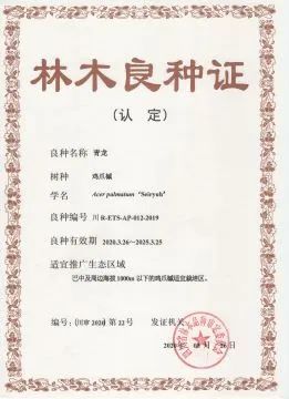 日前,四川省林業(yè)和草原局發(fā)布了一條關(guān)于《四川省發(fā)布2019年度林木良種公告》,作為農(nóng)林企業(yè)的七彩林科憑借自主選育的雞爪槭品種“青龍”、“金貴”順利通過四川省林木品種審定委員會(huì)審定,被認(rèn)定為林木良種,可在適宜種植范圍內(nèi)推廣。其中,“青龍”曾在2018年第六屆中國沐陽花木節(jié)獲產(chǎn)品金獎(jiǎng),“金貴”先后在第十四屆中國苗木交易會(huì)、2018年“美麗中國 最美金葉”評(píng)選大賽中獲產(chǎn)品金獎(jiǎng)。