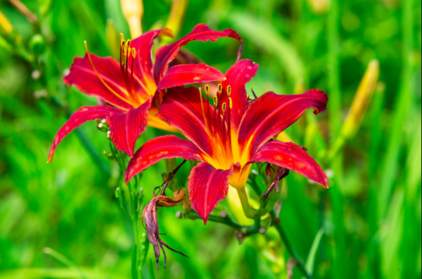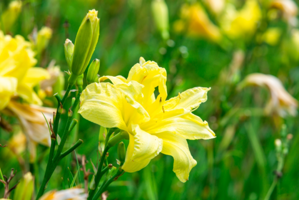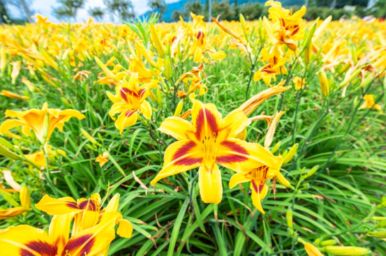 萱草屬多年生宿根草本,其葉形為扁平狀的長(zhǎng)線型,于開花期會(huì)長(zhǎng)出細(xì)長(zhǎng)綠色的開花枝,花色橙黃、花柄很長(zhǎng)、呈為像百合花一樣的筒狀。