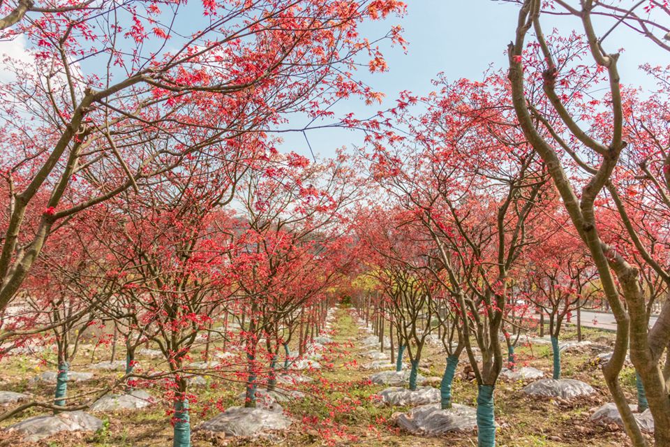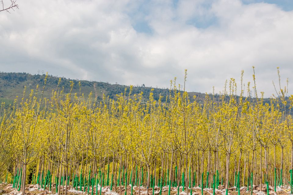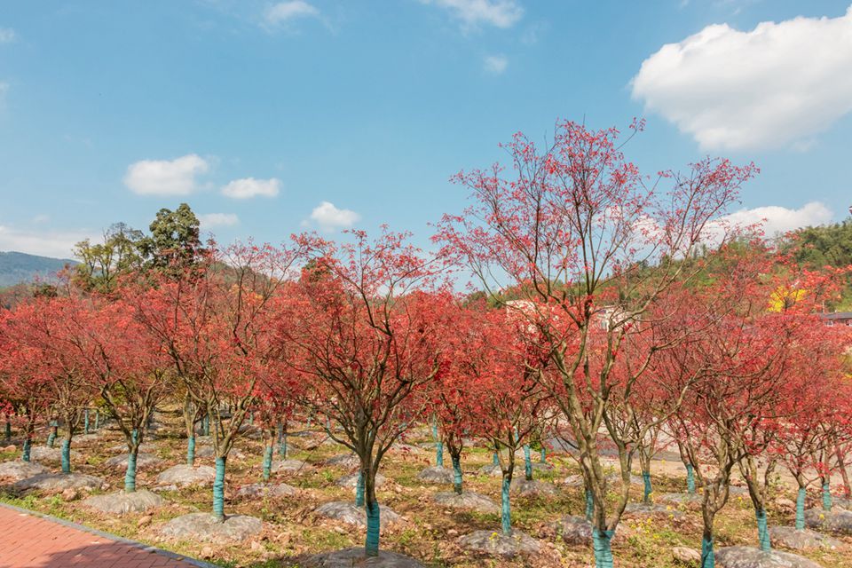 在雅安天全,七彩承建了近兩百畝的特色苗圃。春日到來,萬物復(fù)蘇,這近兩百畝特色苗圃與天全八景之一的慈朗寺交相輝映,別有一番風(fēng)情。