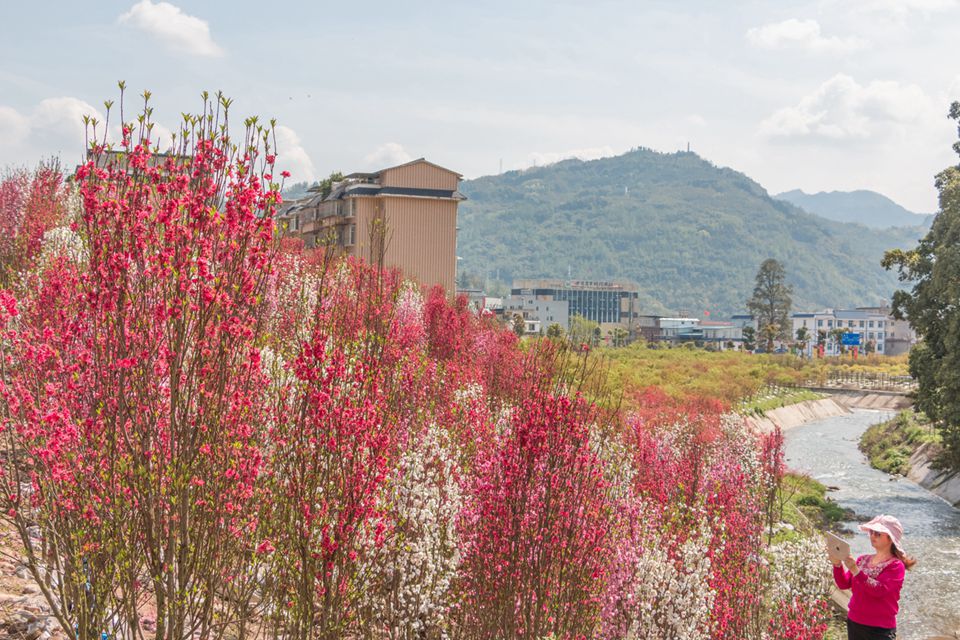 彩色苗木使天全縣城別有韻味