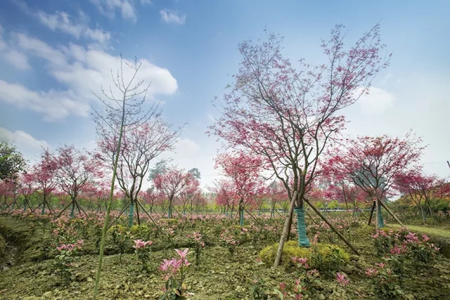 蒲江核心基地,還是七彩林業(yè)數(shù)百棵超大規(guī)格珍稀進(jìn)口彩色植物的聚集地。