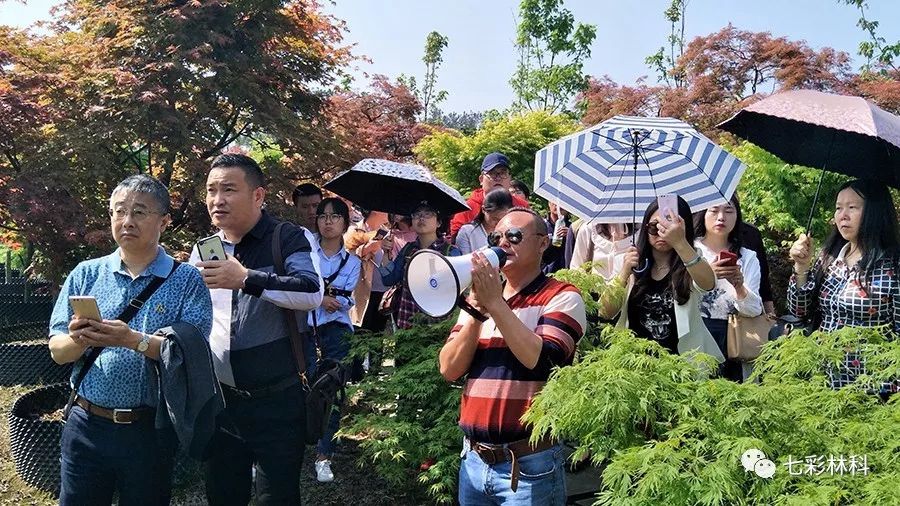 夏時文向?qū)W會人員介紹了園區(qū)珍貴的彩色苗木種類及表現(xiàn)特性,又對園區(qū)精品彩色苗木的擴繁方式、產(chǎn)品的四季表現(xiàn)特性、生長周期等專業(yè)問題做了疑難解答。調(diào)研中,學(xué)會成員就彩色苗木在各地生長情況做了詳細(xì)了解。