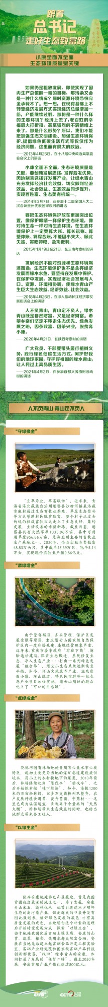 近年來,“綠水青山就是金山銀山”理念日益深入人心,既要“綠”又要“富”成為綠色發(fā)展的全面追求。時值“兩山”理念提出16周年之際,央視網(wǎng)《聯(lián)播+》特梳理總書記相關話語和地方踐行“綠水青山就是金山銀山”理念的生動案例,與您一起堅定信心,跟著總書記走好共創(chuàng)綠色美麗家園、共享美好小康生活的共富之路。